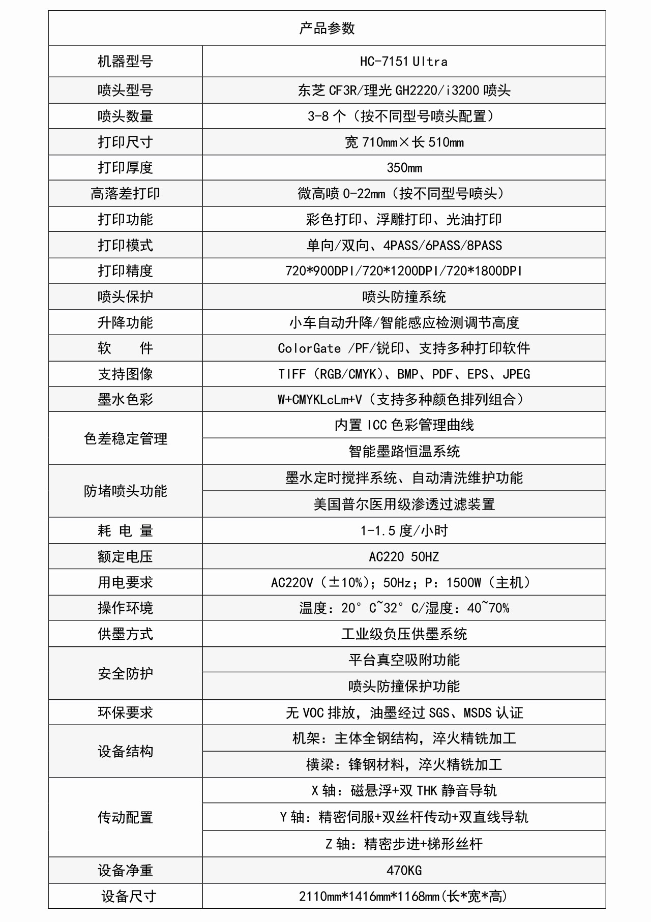 設(shè)備型號:HC-7151UltraUV打印機(jī)